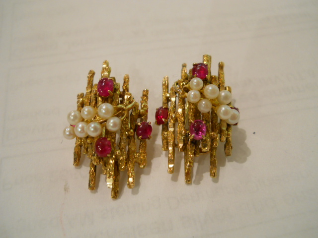 14ct gold pearl and ruby earrings £590.00 Home Modernist (sold) 14ct gold pearl and ruby earrings This item has been sold. Photo Gallery 14ct gold pearl and ruby earrings × 14ct gold pearl and ruby earrings. Listing ID: 3794f7ae0ce95284 Share Interested in this item Contact us at the following email address: sandy@sandystanleyjewellery.co.uk