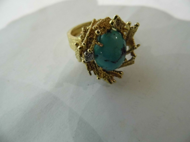 ALAN GARD 18CT GOLD,DIAMOND AND TURQUOISE RING