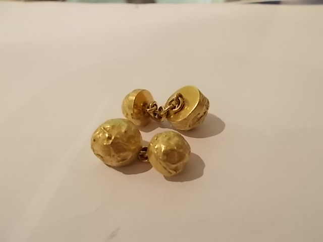 ANDREW GRIMA 18CT GOLD CUFFLINKS signed GRIMA,AGLt £1,750.00 Home British (sold) ANDREW GRIMA 18CT GOLD CUFFLINKS signed GRIMA,AGLt This item has been sold. Photo Gallery ANDREW GRIMA 18CT GOLD CUFFLINKS signed GRIMA,AGLt × A 1970s pair of heavy cufflinks designed by ANDREW GRIMA,small size. Listing ID: 48550abe367068e3 Share Interested in this item Contact us at the following email address: sandy@sandystanleyjewellery.co.uk