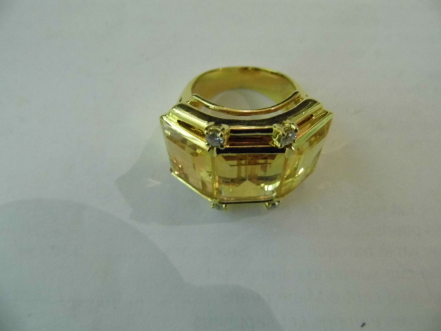 CITRINE,DIAMOND AND 18K EUROPEAN RING C 70s