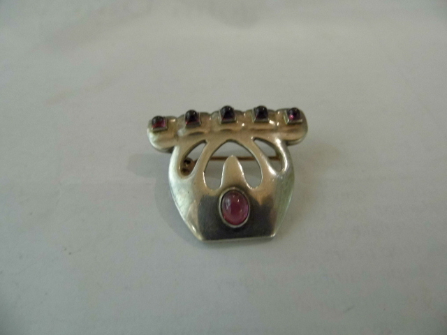 THEODORE FAHNER/MURLLE BENNETT BROOCH IN SILVER AND AMETHIST