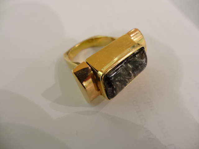 18ct GOLD AND RUTILATED QUARTZ RING £1,150.00 Home Modernist (sold) 18ct GOLD AND RUTILATED QUARTZ RING This item has been sold. Photo Gallery All photos (2) 18ct GOLD AND RUTILATED QUARTZ RING × Size N/O French marks but no makers marks Listing ID: 58452a88b6c05876 Share Interested in this item Contact us at the following email address: sandy@sandystanleyjewellery.co.uk