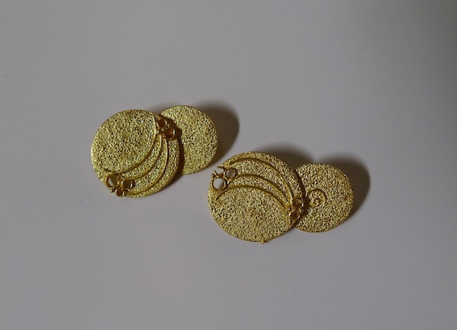 18CT GOLD CUFFLINKS BY GERDA FLOCKINGER (CBE) £2,760.00 Home British 18CT GOLD CUFFLINKS BY GERDA FLOCKINGER (CBE) Photo Gallery 18CT GOLD CUFFLINKS BY GERDA FLOCKINGER (CBE) × 18CT GOLD CUFFLINKS DESIGNED AND MADE BY GERDA FLOCKINGER, larger disc 17×11.5mms,smaller disc 13×13 mms Listing ID: 1494fbe4285a5c2f Share Interested in this item Contact us at the following email address: sandy@sandystanleyjewellery.co.uk