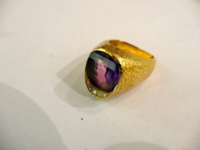 18ct GOLD,AMETHIST AND DIAMOND RING DESIGNED BY GEOFFREY TURK. Home British (sold) 18ct GOLD,AMETHIST AND DIAMOND RING DESIGNED BY GEOFFREY TURK. This item has been sold. Photo Gallery All photos (3) 18ct GOLD,AMETHIST AND DIAMOND RING DESIGNED BY GEOFFREY TURK. × Well designed ring by Geoffrey Turk, who worked with ANDREW GRIMA. He has now passed away and this ring was made in the late 1970s and is signed GT. Listing ID: 452548874b0b6ac1 Share Interested in this item Contact us at the following email address: sandy@sandystanleyjewellery.co.uk