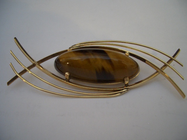 9ct tigers eye gold brooch Home Modernist (sold) 9ct tigers eye gold brooch This item has been sold. Photo Gallery 9ct tigers eye gold brooch × 1970s 9ct tigers eye gold brooch, no makers marks Listing ID: 9884f2a9d098f723 Share Interested in this item Contact us at the following email address: sandy@sandystanleyjewellery.co.uk