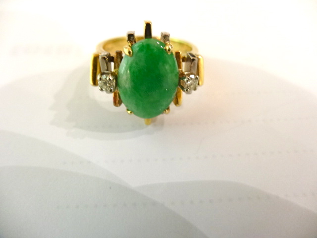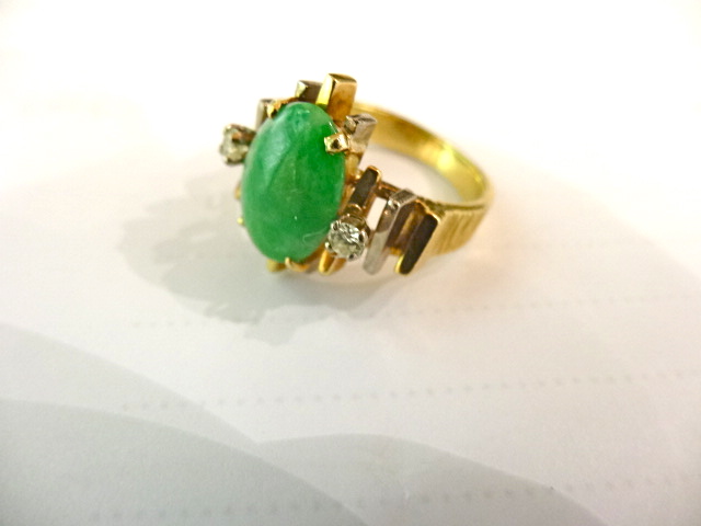 Lovely Alan Gard ring with jade,smaller ring with 2 diamonds.