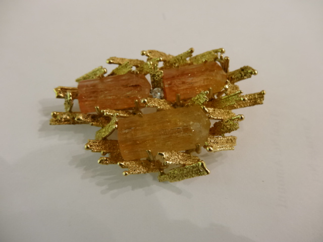 ALAN GARD BROOCH,BARLEY SUGAR TOPAZ AND DIAMOND Home British (sold) ALAN GARD BROOCH,BARLEY SUGAR TOPAZ AND DIAMOND This item has been sold. Photo Gallery All photos (3) ALAN GARD BROOCH,BARLEY SUGAR TOPAZ AND DIAMOND × Lovely texture brooch by Alan Gard with topaz and a diamond. Marked AMG and dated 1968 Listing ID: 25527a7c0aadc58 Share Interested in this item Contact us at the following email address: sandy@sandystanleyjewellery.co.uk