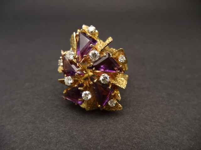 ALAN GARD DESIGND RING,AMETHISTS,10 DIAMONDS Home British (sold) ALAN GARD DESIGND RING,AMETHISTS,10 DIAMONDS This item has been sold. Photo Gallery All photos (3) ALAN GARD DESIGND RING,AMETHISTS,10 DIAMONDS × Large ring with 5 pieces of cut amethist stones and 10 diamonds. After researching this ring Alan Gard has confirmed that he designed this ring in the 70s. Its marked 18ct and will have a letter from ALAN GARD. Listing ID: 14855ccbf1d00910 Share Interested in this item Contact us at the following email address: sandy@sandystanleyjewellery.co.uk