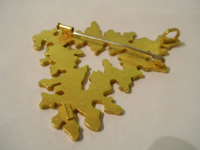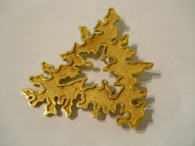 ANDREW GRIMA 18CT GOLD BROOCH PENDANT,SIGNED GRIMA,1971 Home British (sold) ANDREW GRIMA 18CT GOLD BROOCH PENDANT,SIGNED GRIMA,1971 This item has been sold. Photo Gallery All photos (3) ANDREW GRIMA 18CT GOLD BROOCH PENDANT,SIGNED GRIMA,1971 × 6.5cms long, In a triangualr shape. Lovely abstract deign ,London date marked for 1971 Listing ID: 455298ba5fc7b7d Share Interested in this item Contact us at the following email address: sandy@sandystanleyjewellery.co.uk