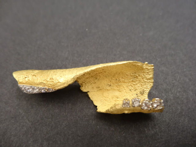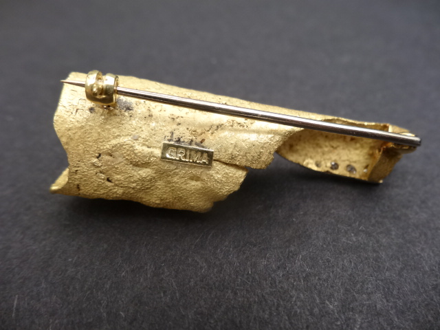 ANDREW GRIMA 18ct GOLD BROOCH/PENDANT,1965 Home British (sold) ANDREW GRIMA 18ct GOLD BROOCH/PENDANT,1965 This item has been sold. Photo Gallery All photos (3) ANDREW GRIMA 18ct GOLD BROOCH/PENDANT,1965 × 5cms long, 8 brilliant cut diamonds of varying size, signed GRIMA ,HJCo dated 1965 Listing ID: 95156795fe41e857 Share Interested in this item Contact us at the following email address: sandy@sandystanleyjewellery.co.uk