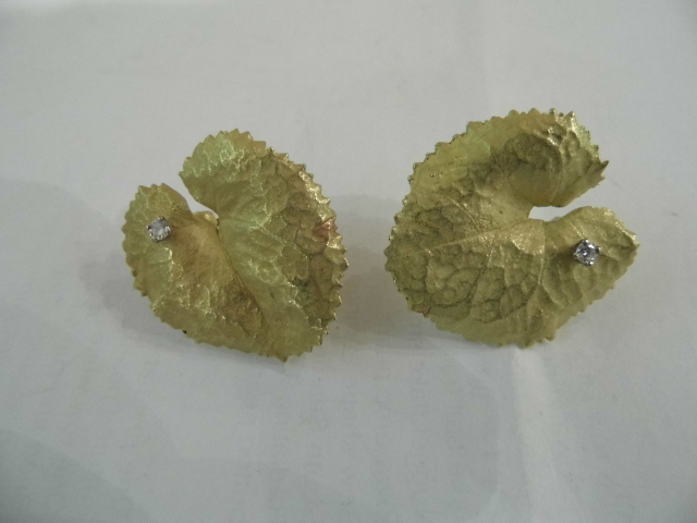 ANDREW GRIMA 18CT GOLD LEAF EARINGS WITH DIAMONDS £2,600.00 Home British (sold) ANDREW GRIMA 18CT GOLD LEAF EARINGS WITH DIAMONDS This item has been sold. Photo Gallery ANDREW GRIMA 18CT GOLD LEAF EARINGS WITH DIAMONDS × Leaf shaped earings by GRIMA signed Grima HJ Co 1970. 2.5x 2.5 cms aprox . posts and clipe. Listing ID: 96651c9b96929225 Share Interested in this item Contact us at the following email address: sandy@sandystanleyjewellery.co.uk