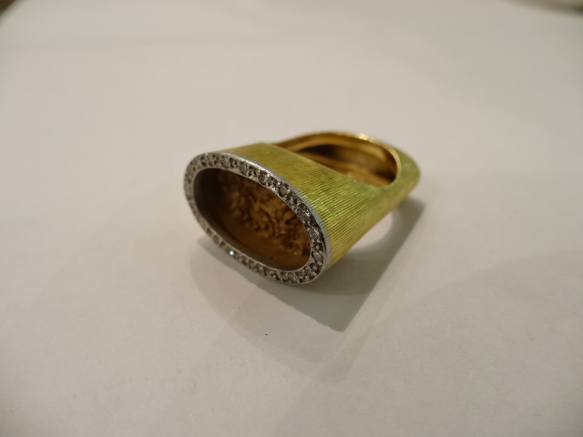 ANDREW GRIMA 18ct gold ring with small diamonds,signed GRIMA,1971 Home British (sold) ANDREW GRIMA 18ct gold ring with small diamonds,signed GRIMA,1971 This item has been sold. Photo Gallery All photos (3) ANDREW GRIMA 18ct gold ring with small diamonds,signed GRIMA,1971 × SIZE N, Lovely designe with textures sides and gold shavings on the inside of the ring. Listing ID: 736528e1022c2370 Share Interested in this item Contact us at the following email address: sandy@sandystanleyjewellery.co.uk