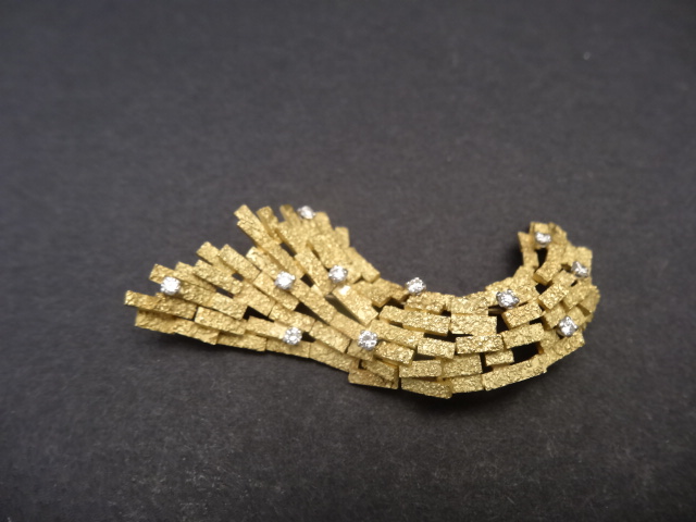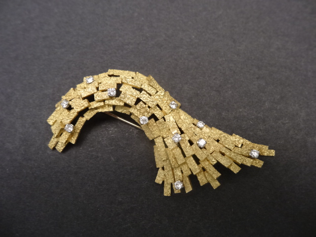 ANDREW GRIMA 18CT GOLD/DAMOND BROOCH 1965 Home British (sold) ANDREW GRIMA 18CT GOLD/DAMOND BROOCH 1965 This item has been sold. Photo Gallery All photos (3) ANDREW GRIMA 18CT GOLD/DAMOND BROOCH 1965 × 7cms long . Signed HJCo designed by Grima in Garrards box. Listing ID: 50355d32d3e61597 Share Interested in this item Contact us at the following email address: sandy@sandystanleyjewellery.co.uk