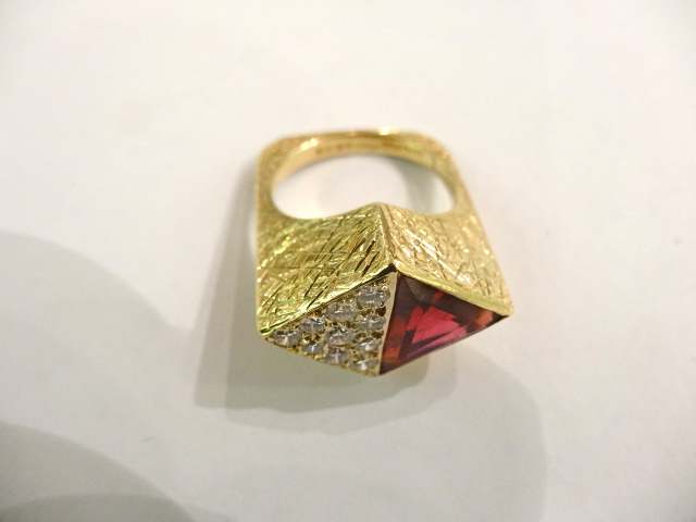 ANDREW GRIMA 18ct RING WITH RUBELLITE TOURMALINE AND DIAMONDS,SIGNED GRIMA 1969 Home British (sold) ANDREW GRIMA 18ct RING WITH RUBELLITE TOURMALINE AND DIAMONDS,SIGNED GRIMA 1969 This item has been sold. Photo Gallery All photos (4) ANDREW GRIMA 18ct RING WITH RUBELLITE TOURMALINE AND DIAMONDS,SIGNED GRIMA 1969 × Unusual GRIMA ring with lined textured gold. Signed with both the GRIMA mark and HJCo dated 1969 SIZE P. Listing ID: 872546e0d5b0c551 Share Interested in this item Contact us at the following email address: sandy@sandystanleyjewellery.co.uk