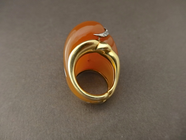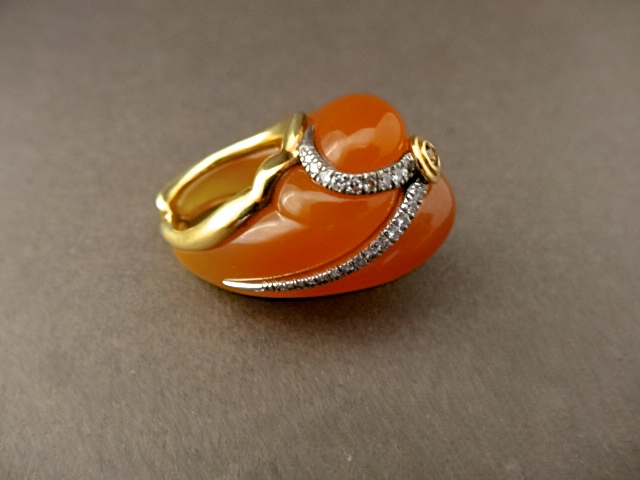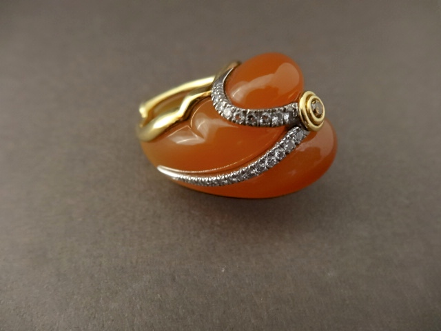 ANDREW GRIMA CHALCEDONY AND DIAMOND RING,MID 80s