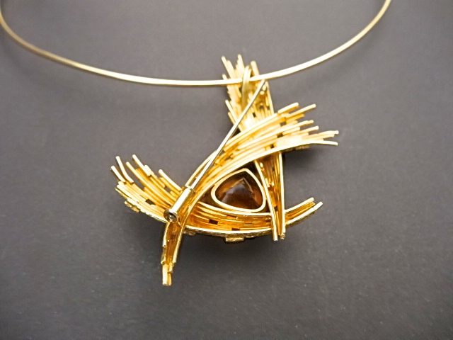 gREAT PENDANT BROOCH with a faceted citrine and signed GRIMA with date marks