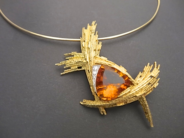 ANDREW GRIMA CITRINE AND DIAMOND PENDANT 1970