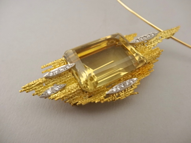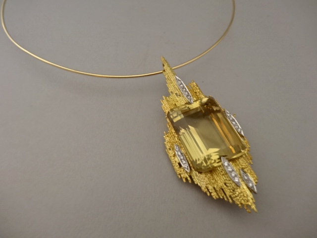 ANDREW GRIMA CITRINE PENDANT WITH DIAMONDS,SIGNED GRIMA,1977