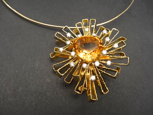 ANDREW GRIMA CITRINE,DIAMOND PENDANT/BROOCH Home British (sold) ANDREW GRIMA CITRINE,DIAMOND PENDANT/BROOCH This item has been sold. Photo Gallery All photos (3) ANDREW GRIMA CITRINE,DIAMOND PENDANT/BROOCH × ANDREW GRIMA BROOCH PENDANT SIGNED and dated k for 1965. Listing ID: 6115644c738df01a Share Interested in this item Contact us at the following email address: sandy@sandystanleyjewellery.co.uk