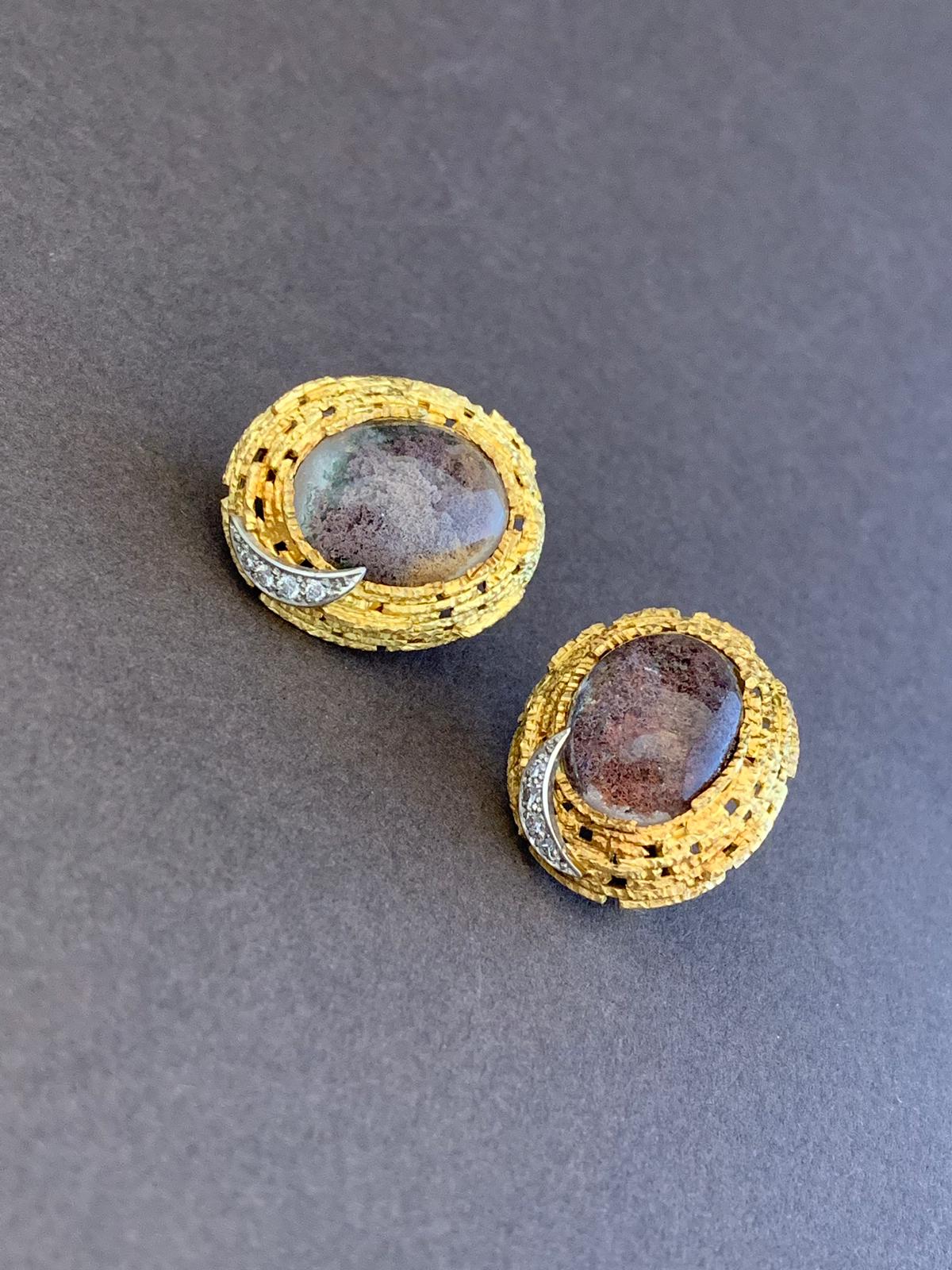 Andrew Grima clip and post earings with Dendrite, signed with Grima plaque and Ag ltd.