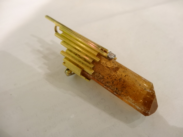ANDREW GRIMA PENDANT/BROOCH,BARLEY SUGAR TOPAZ and one diamond, MARKED HJCo 1968 Home British (sold) ANDREW GRIMA PENDANT/BROOCH,BARLEY SUGAR TOPAZ and one diamond, MARKED HJCo 1968 This item has been sold. Photo Gallery All photos (3) ANDREW GRIMA PENDANT/BROOCH,BARLEY SUGAR TOPAZ and one diamond, MARKED HJCo 1968 × Lovely brooch/pendant, aprox 6.5 cms long and aprox 2cms wide Listing ID: 776535934713a219 Share Interested in this item Contact us at the following email address: sandy@sandystanleyjewellery.co.uk
