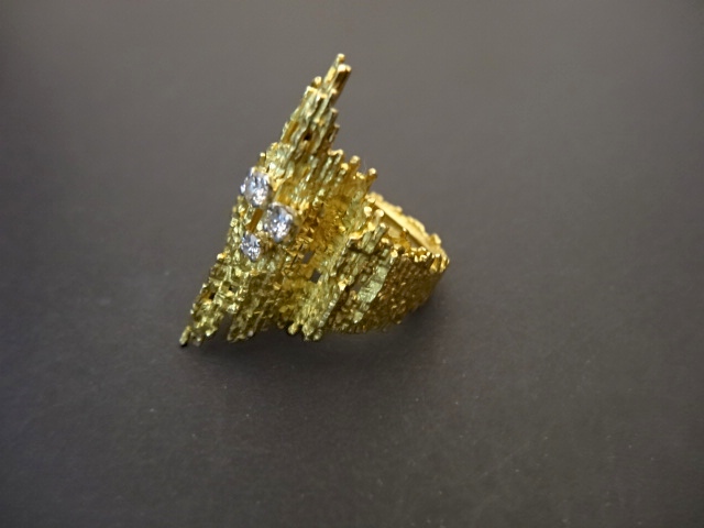 ANDREW GRIMA RING WITH 3 DIAMONDS,DATED 1971
