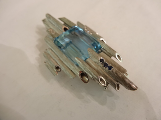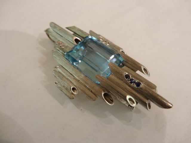 ANDREW GRIMA WHITE GOLD AND AQUAMARINE PENDANT/BROOCH WITH DIAMONDS Home British (sold) ANDREW GRIMA WHITE GOLD AND AQUAMARINE PENDANT/BROOCH WITH DIAMONDS This item has been sold. Photo Gallery All photos (3) ANDREW GRIMA WHITE GOLD AND AQUAMARINE PENDANT/BROOCH WITH DIAMONDS × 6CMS Long,width 3.2 cms. Marked AGLtd 1973 Listing ID: 7435359391c56ed0 Share Interested in this item Contact us at the following email address: sandy@sandystanleyjewellery.co.uk