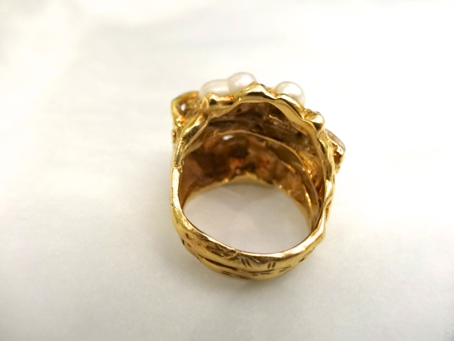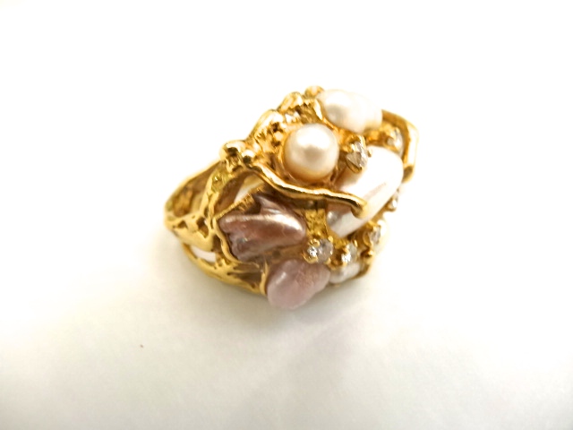 ARTHUR KING 18ct RING WITH PEARLS AND DIAMONDS