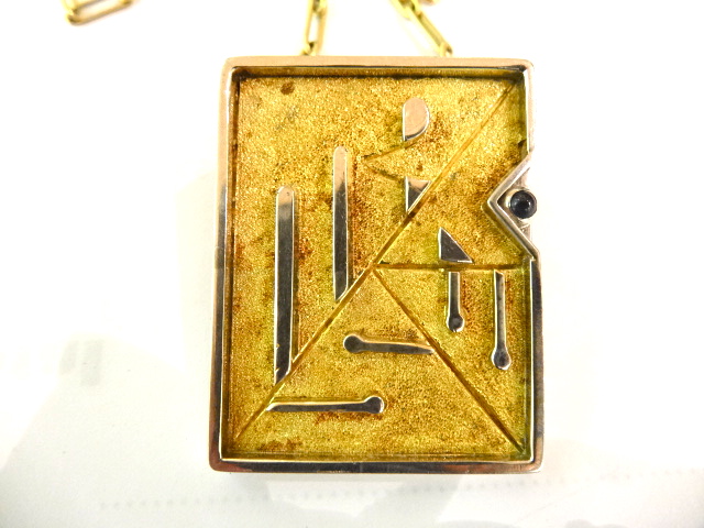 CHARLES DE TEMPLE 18CT GOLD PENDANT ON CHAIN Home British (sold) CHARLES DE TEMPLE 18CT GOLD PENDANT ON CHAIN This item has been sold. Photo Gallery All photos (3) CHARLES DE TEMPLE 18CT GOLD PENDANT ON CHAIN × Unusual pendant designed for someone in 1978 and signed in full script Charles De Temple. Purchased from the original owner. Listing ID: 71453b81f982e0e7 Share Interested in this item Contact us at the following email address: sandy@sandystanleyjewellery.co.uk