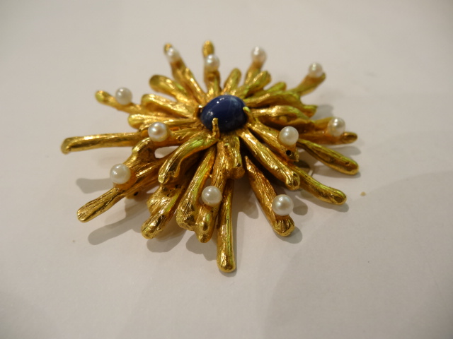 CHARLES DE TEMPLE 9ct BROOCH With pearls and saphire,signed in full