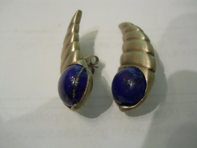 Charles De Temple white gold and Lapis earrings,with posts ,marked Cde T