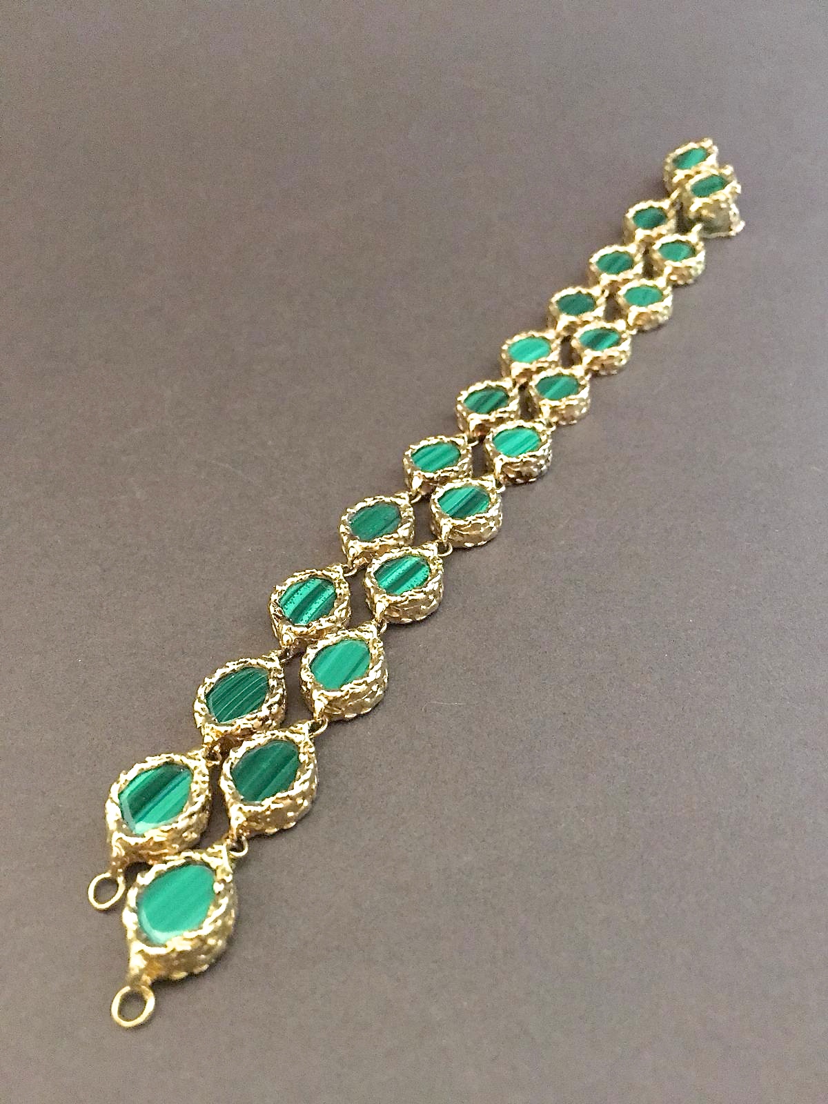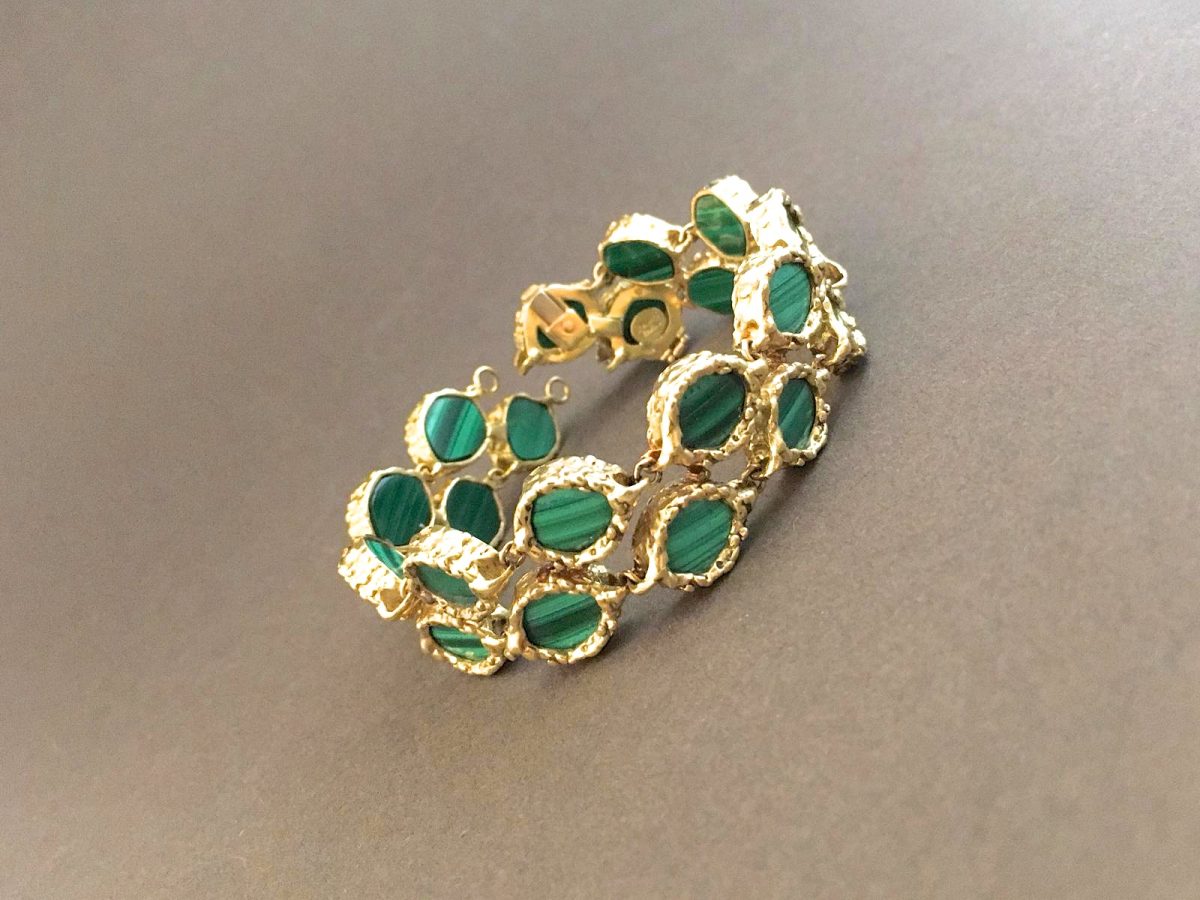 CHAUMET GOLD BRACELET WITH MALECHITE,SIGNED Home Modernist (sold) CHAUMET GOLD BRACELET WITH MALECHITE,SIGNED This item has been sold. Photo Gallery All photos (2) CHAUMET GOLD BRACELET WITH MALECHITE,SIGNED × 18ct signed French bracelet by Chaumet 70s, LENGTH 22cms weight 77.6 grammes Listing ID: 145c152a48c869c Share Interested in this item Contact us at the following email address: sandy@sandystanleyjewellery.co.uk