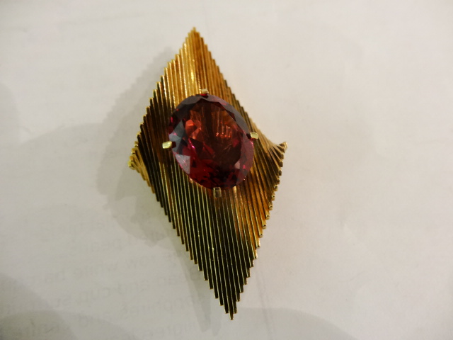 DAVID THOMAS BROOCH with tourmaline, marked DAT 18ct £1,550.00 Home British (sold) DAVID THOMAS BROOCH with tourmaline, marked DAT 18ct This item has been sold. Photo Gallery All photos (3) DAVID THOMAS BROOCH with tourmaline, marked DAT 18ct × 5cms x 2.3 cms aprox,rods of gold in a wave effect. Listing ID: 95053874430314b3 Share Interested in this item Contact us at the following email address: sandy@sandystanleyjewellery.co.uk