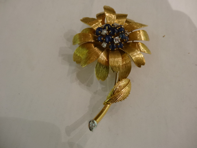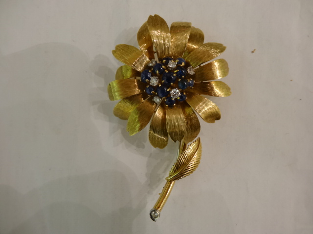 FLOWER BROOCH DESIGNED BY ANDREW GRIMA,diamonds and saphires.