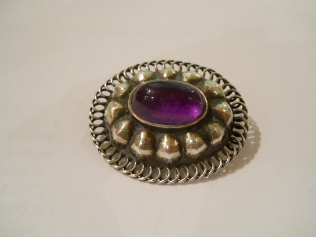 GEORG JENSEN SILVER AND AMETHIST BROOCH NO 155 £330.00 Home Scandinavian GEORG JENSEN SILVER AND AMETHIST BROOCH NO 155 Photo Gallery GEORG JENSEN SILVER AND AMETHIST BROOCH NO 155 × GEORG JENSEN BROOCH with amethist stone,post 1945 marks,in good condition.3.5 cms wide. Listing ID: 5184fe9bb456eaae Share Interested in this item Contact us at the following email address: sandy@sandystanleyjewellery.co.uk