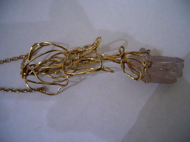 Gilt and rose quartz pendant designed by Spiegelhalter for Fior