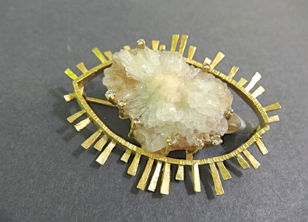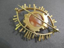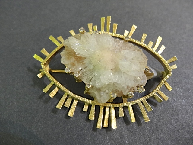 JACQUELINE MINA GOLD,AGATE AND DIAMND BROOCH,SIGNED