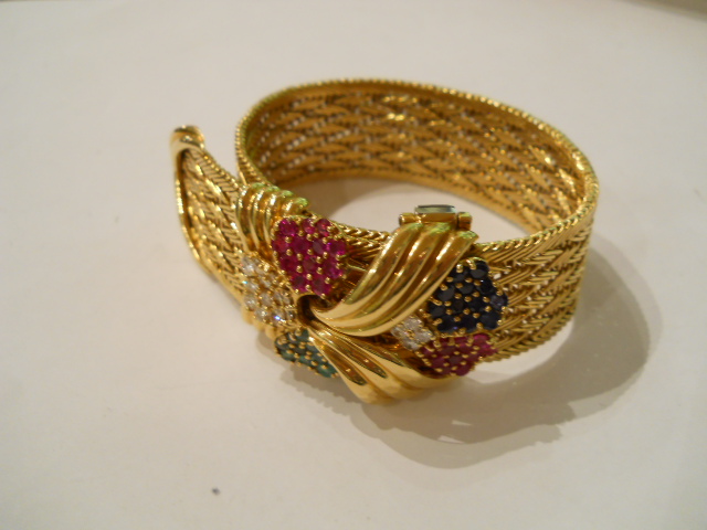 KUTCHINSKY 18CT GOLD,diamonds,rubies,saphires and emerald bracelet 1960 london £4,500.00 Home British (sold) KUTCHINSKY 18CT GOLD,diamonds,rubies,saphires and emerald bracelet 1960 london This item has been sold. Photo Gallery KUTCHINSKY 18CT GOLD,diamonds,rubies,saphires and emerald bracelet 1960 london × Signed in full KUTCHINSKY,London hallmarked for 1969,114 grammes. Listing ID: 6854fd37c64eacc7 Share Interested in this item Contact us at the following email address: sandy@sandystanleyjewellery.co.uk