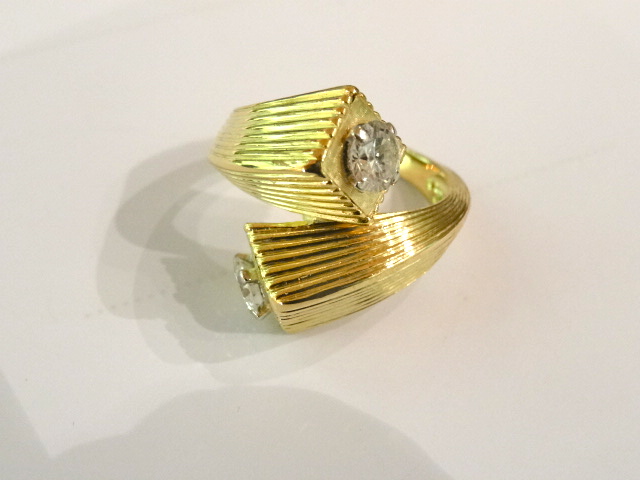 KUTCHINSKY 18CT RING WITH TWO DIAMONDS,1961,SIGNED £2,350.00 Home British (sold) KUTCHINSKY 18CT RING WITH TWO DIAMONDS,1961,SIGNED This item has been sold. Photo Gallery All photos (4) KUTCHINSKY 18CT RING WITH TWO DIAMONDS,1961,SIGNED × Wonderfil ring,size P1/2, with two brilliant cut diamonds aproc .65 each so over a carat of diamonds. Twisted reeded shank in good condition and fully signed. Listing ID: 40453e4f00933b94 Share Interested in this item Contact us at the following email address: sandy@sandystanleyjewellery.co.uk