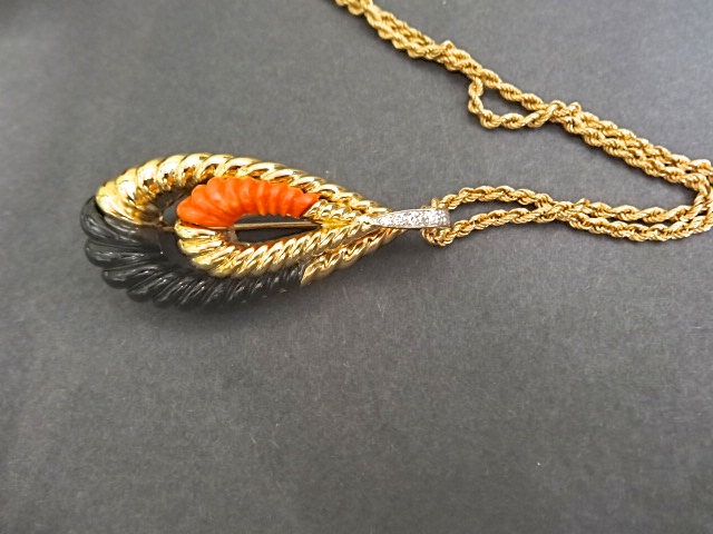 KUTCHINSKY GOLD,CORAL AND ONYX PENDANT,70S SIGNED KUTCHINSKY Home British (sold) KUTCHINSKY GOLD,CORAL AND ONYX PENDANT,70S SIGNED KUTCHINSKY This item has been sold. Photo Gallery All photos (3) KUTCHINSKY GOLD,CORAL AND ONYX PENDANT,70S SIGNED KUTCHINSKY × 18ct gold chain and gold pendant made by KUTCHINSKY IN THE 70S. Listing ID: 6457a8906412ba2 Share Interested in this item Contact us at the following email address: sandy@sandystanleyjewellery.co.uk