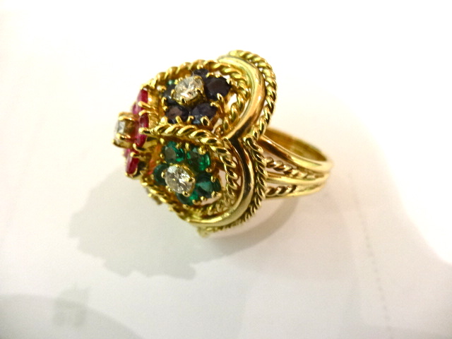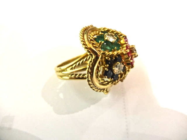 KUTCHINSKY RING IN 18CT GOLD WITH RUBIES,SAPHIRES,EMERALDS AND DIAMONDS,SIGNED KUTCHINSKY