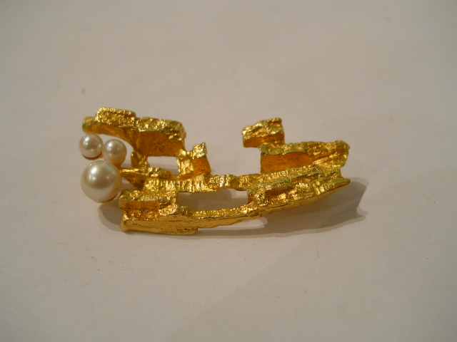 18CT gold brooch with pearl designed by BJORN WECKSTROM,marked BJORN,750,Lapponia,Finland.