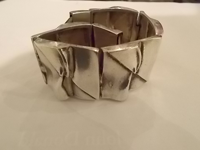 LAPPONIA SILVER BRACELET “moonbridge” 1969 DESIGNED BY BJORN WECKSTROM £750.00 Home Scandinavian (sold) LAPPONIA SILVER BRACELET “moonbridge” 1969 DESIGNED BY BJORN WECKSTROM This item has been sold. Photo Gallery LAPPONIA SILVER BRACELET "moonbridge" 1969 DESIGNED BY BJORN WECKSTROM × Wonderfully heavy braclet by Bjorn Weckstrom,1970s,signed Lapponia with Finnish marks. 3.2 CMS WIDE aprox 18.5 long. Listing ID: 76450e714945a2f8 Share Interested in this item Contact us at the following email address: sandy@sandystanleyjewellery.co.uk