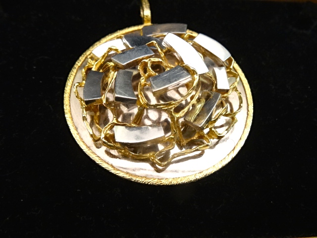 LARGE KUTCHINSKY 18CT YELLOW AND WHITE GOLD PENDANT IN BOX £3,900.00 Home British (sold) LARGE KUTCHINSKY 18CT YELLOW AND WHITE GOLD PENDANT IN BOX This item has been sold. Photo Gallery All photos (3) LARGE KUTCHINSKY 18CT YELLOW AND WHITE GOLD PENDANT IN BOX × Large pendant 6.5 x 6.5 cms. Signed in full and London hallmarks for 1971. Great clasp that opens so a large chain could be attached. Listing ID: 53756379e0e9b2ad Share Interested in this item Contact us at the following email address: sandy@sandystanleyjewellery.co.uk