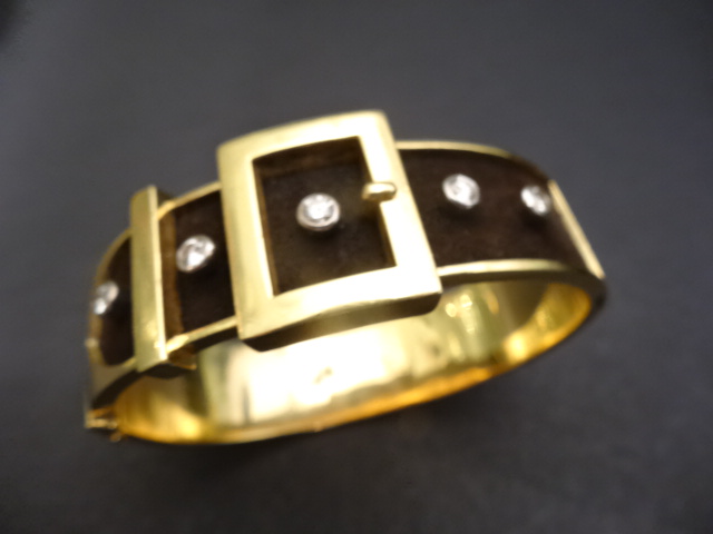PUIG DORIA 18CT GOLD BANGLE WITH SUEDE,SPANISH 70S