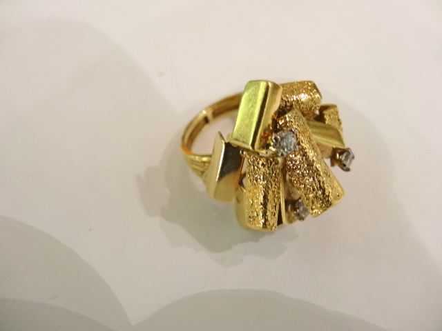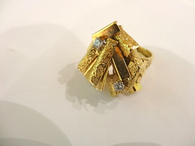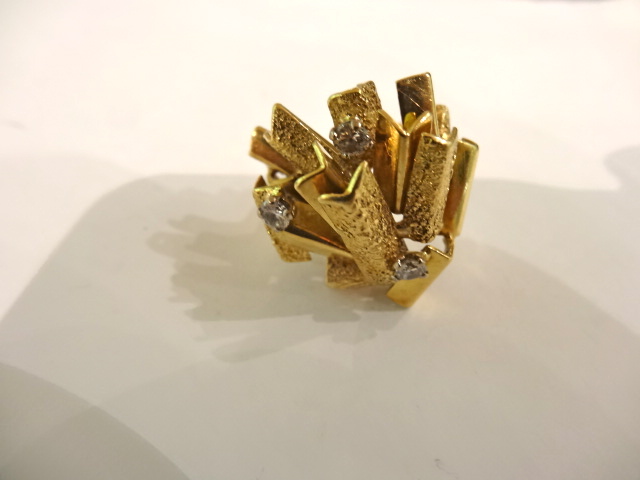 Good sized ring by Alan Gard,size N. Some textured rods and some polished. Slightly faded marks but can see there are London hallmarks for 1972 and the remnants of the amg mark. Alan has also confirmed that its a ring he designed.