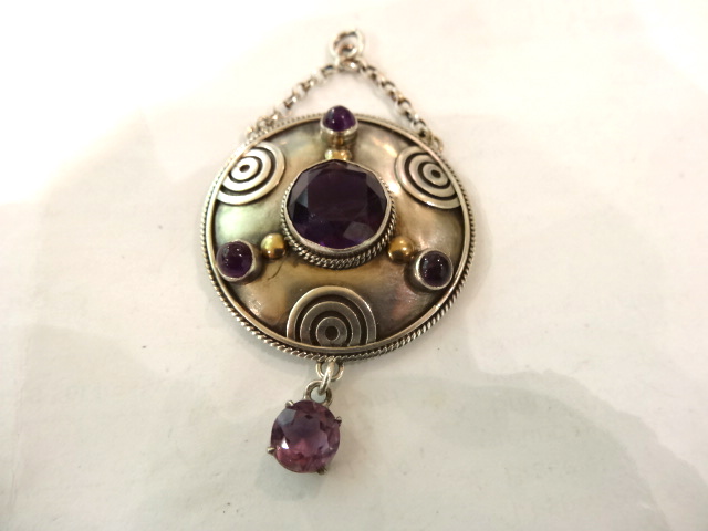 SILVER AND AMETHIST ARTS AND CRAFTS PENDANT,C 1910 £120.00 Home Arts & Crafts SILVER AND AMETHIST ARTS AND CRAFTS PENDANT,C 1910 Photo Gallery All photos (3) SILVER AND AMETHIST ARTS AND CRAFTS PENDANT,C 1910 × Lovely silver arts and crafts pendant. No makers marks, marked SILVER. In Birmingham schools style c 1910. Listing ID: 94553399c1898be9 Share Interested in this item Contact us at the following email address: sandy@sandystanleyjewellery.co.uk