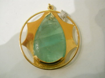 SWEDISH 18CT GOLD pendant with green stone, possibly beryl, with unknown makers marks.