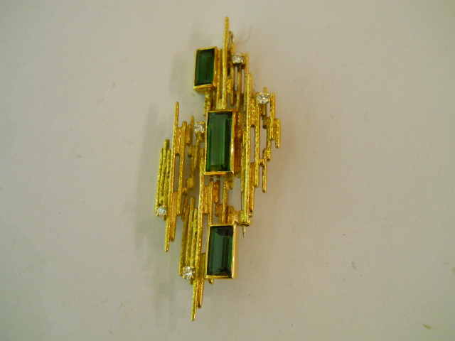 Tourmaline and diamond 18ct brooch pendant London hallmarks for 1973