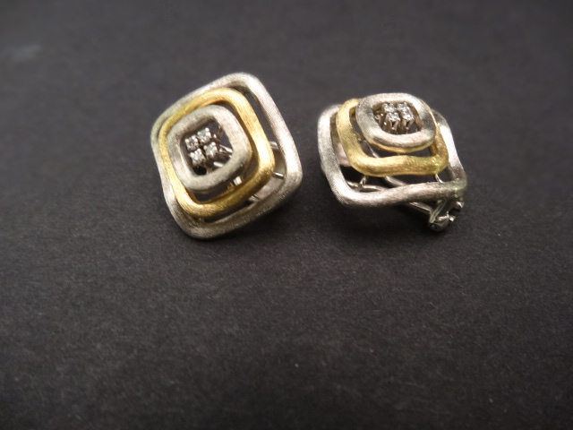 WHITE AND YELLOW BRUSHED GOLD,DIAMOND EARINGS £550.00 Home Modernist (sold) WHITE AND YELLOW BRUSHED GOLD,DIAMOND EARINGS This item has been sold. Photo Gallery All photos (2) WHITE AND YELLOW BRUSHED GOLD,DIAMOND EARINGS × 1.5 CMS WIDE..MARKED750 Listing ID: 68755819f9f4d2d6 Share Interested in this item Contact us at the following email address: sandy@sandystanleyjewellery.co.uk